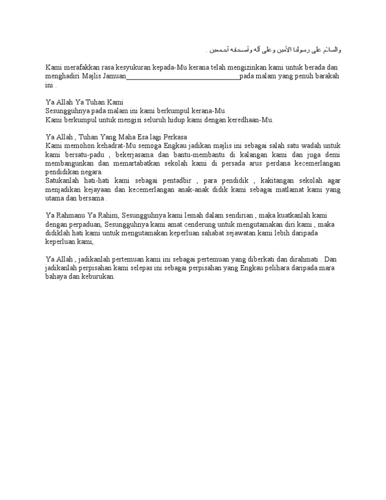 Kita dituntut untuk selalu berdoa dan memohon hajat kepada allah swt. Contoh teks ucapan alu aluan ringkas. Isi kandungan doa juga boleh diterjemah dalam Bahasa.